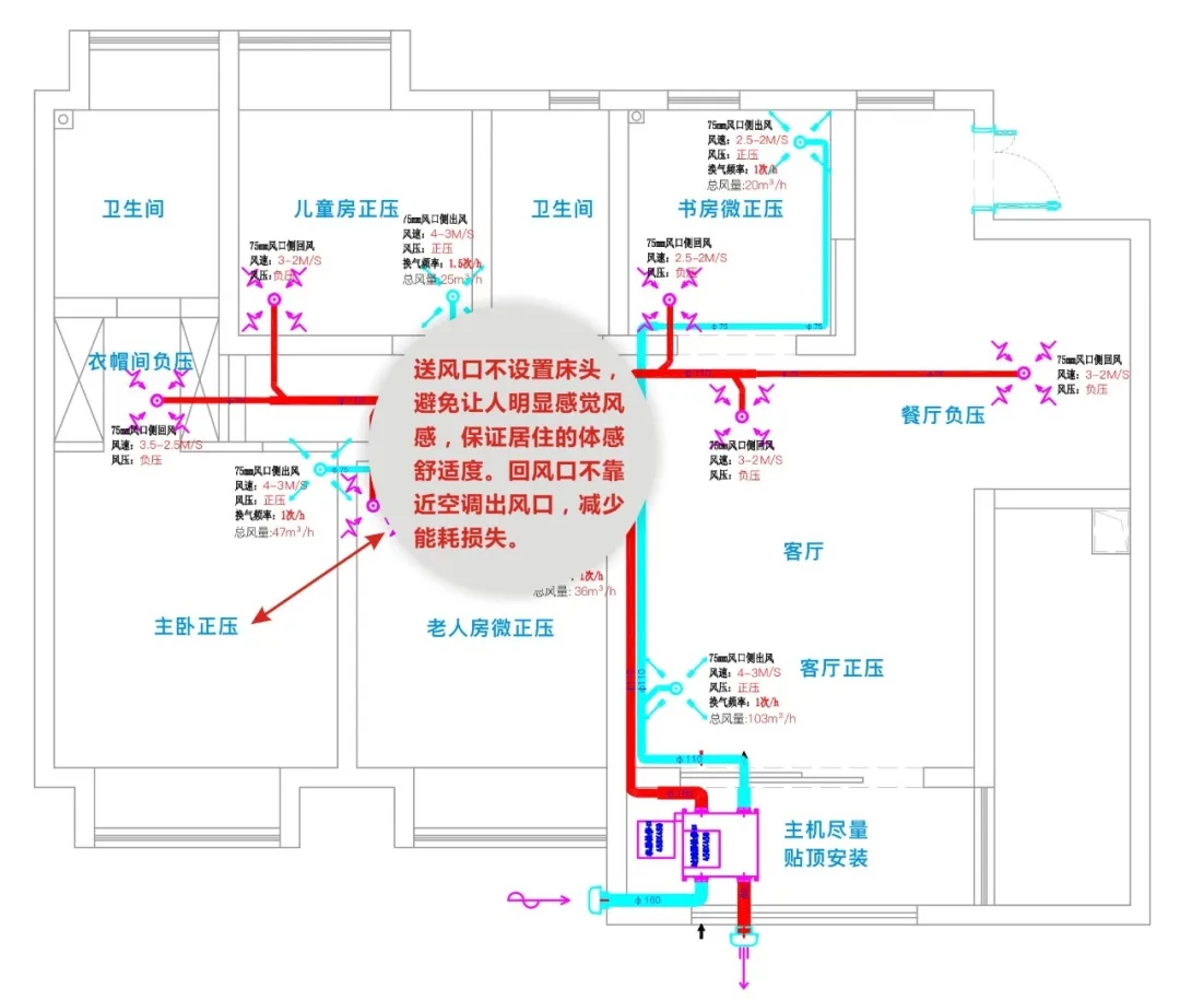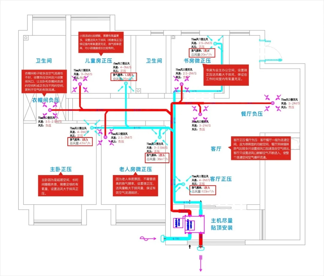 每個房間甚至房間的不同部位,都是需要設(shè)定風(fēng)壓的,比如主人睡眠不好,你在臥室設(shè)定負壓,換氣是換氣了,不過下雨就胸悶。衣帽間沒有人長期使用,你設(shè)定正壓,你把甲醛壓到臥室去啊?風(fēng)是流動的,這個房間這個區(qū)域的風(fēng)壓會影響到另外一個房間和部位,設(shè)計及驗收新風(fēng)不考慮水力平衡原理考慮風(fēng)壓,你設(shè)計安裝啥子新風(fēng)?沒有入門: