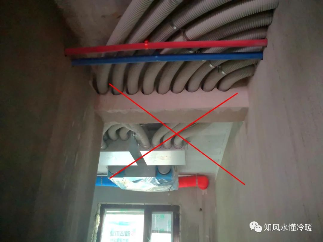 下面為PE送風PE回風,對于承重梁不要集中打孔走管,需進行管路設計分散打孔,或走梁下,如對層高要求較高還可采用超薄3cm扁管繞梁(風阻略大)
