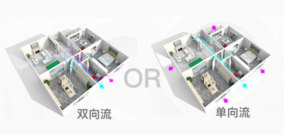 “單向流”和“雙向流”同樣都能通風(fēng)換氣,區(qū)別在于“換氣效果”與“送風(fēng)舒適度”。因此,如果你對室內(nèi)空氣品質(zhì)有更高的要求,那你就必須搞清楚它們。