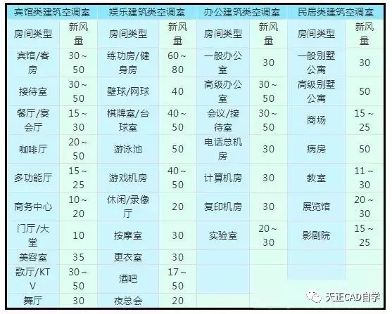 空調環境不同類型建筑新風量標準(新風量:m3/h.人)