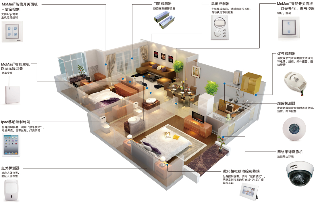 智能家居系統(tǒng)是利用先進(jìn)的計(jì)算機(jī)技術(shù)、網(wǎng)絡(luò)通訊技術(shù)、綜合布線技術(shù)、醫(yī)療電子技術(shù)依照人體工程學(xué)原理,融合個(gè)性需求,將與家居生活有關(guān)的各個(gè)子系統(tǒng)如安防、燈光控制、窗簾控制、煤氣閥控制、信息家電、場景聯(lián)動(dòng)、地板采暖、健康保健、衛(wèi)生防疫、安防保安等有機(jī)地結(jié)合在一起,霍尼韋爾智能家居系統(tǒng)通過網(wǎng)絡(luò)化綜合智能控制和管理,實(shí)現(xiàn)“以人為本”的全新家居生活體驗(yàn)。下面我們就主要介紹一下霍尼韋爾智能家居系統(tǒng)。